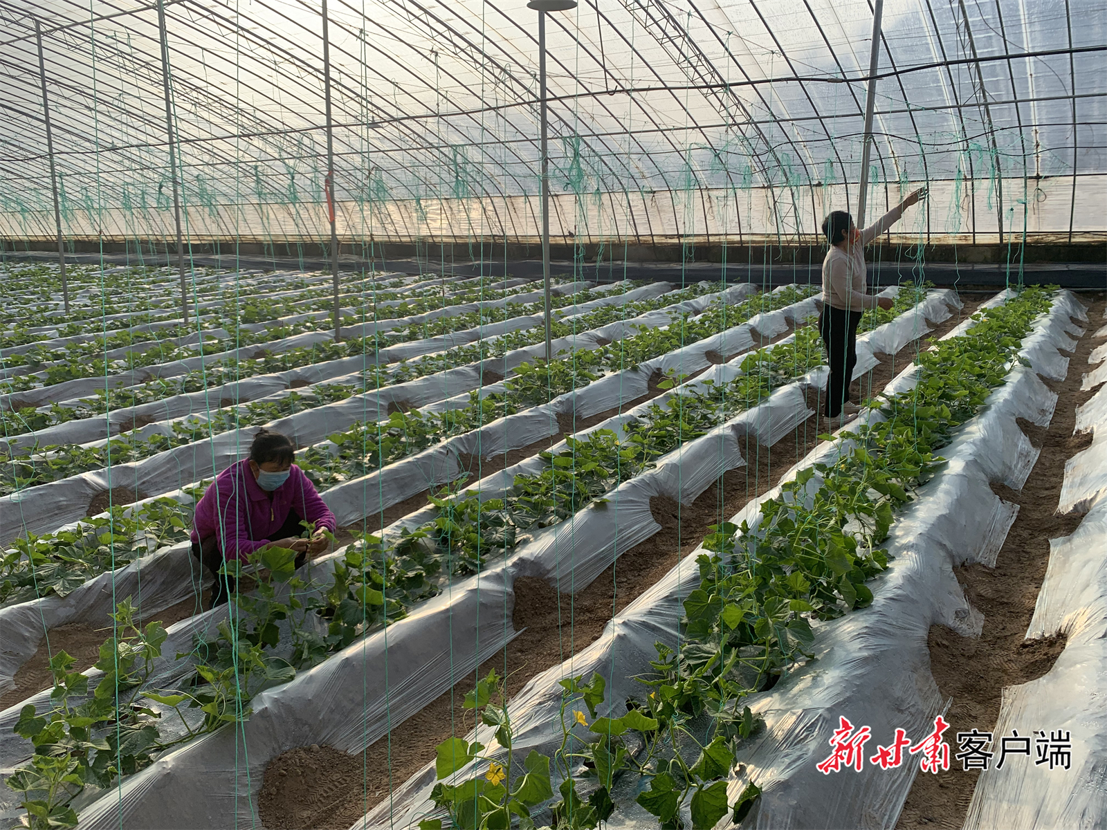 山东寿光技术人员和合水县当地农民结对开展白黄瓜管理工作。