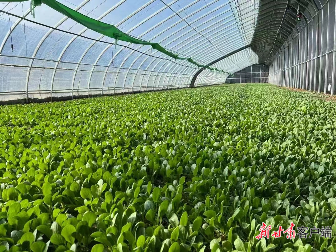 镇原县平泉镇上刘-马洼田园综合体日光温室内绿意盎然。